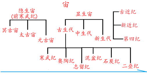隐生宙又细分为:冥古宙、太古宙、元古宙。
